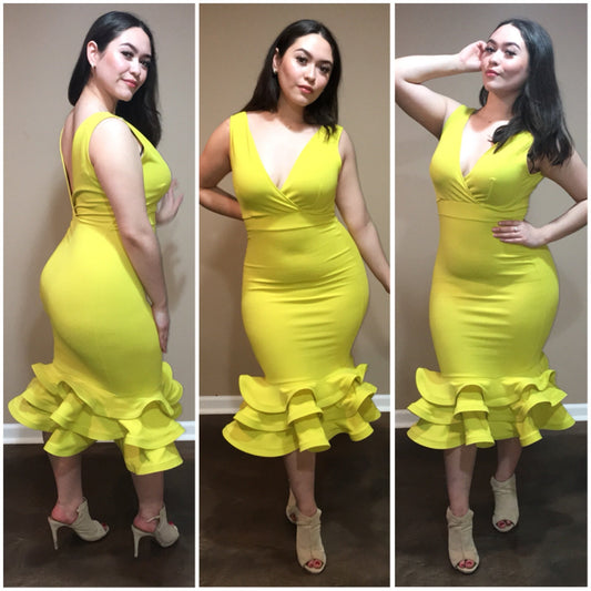 The Affair Ruffle Dress (Yellow)