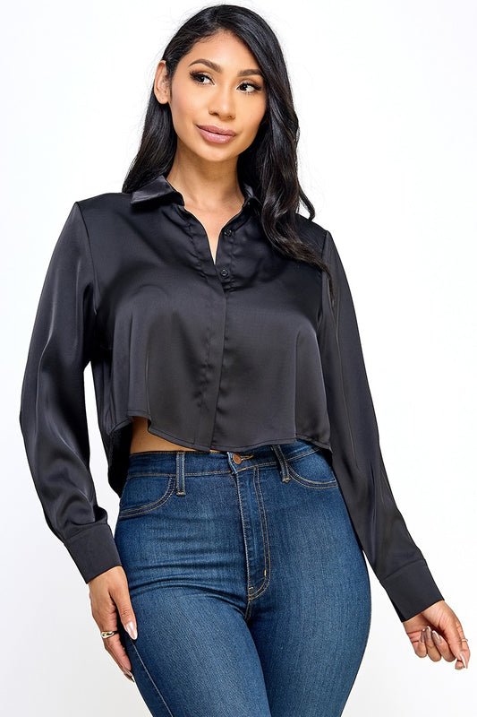 Georgina Satin Top (Black)